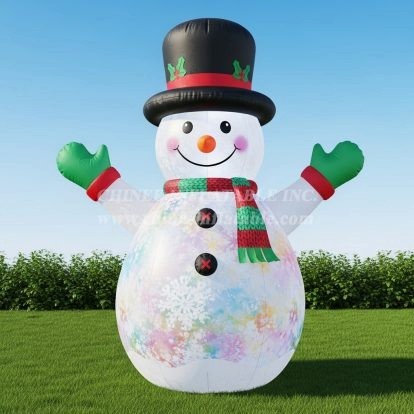 The colorful body features snowflake accents that pop in daylight and look fantastic under spotlights at night. Custom options are available upon request, including size adjustments, printed logos, and color tweaks to match branding or event themes. Whether you are a rental operator building a holiday inventory or a business seeking an eye‑catching entrance piece, this snowman offers strong visual impact with minimal maintenance.