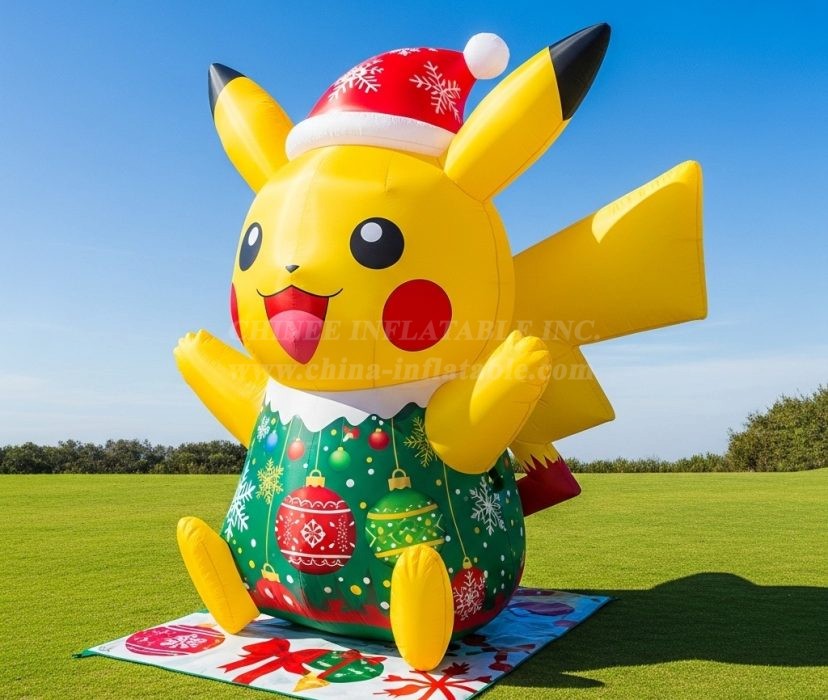 Bring festive cheer and instant crowd appeal to your event with our C1-766 Pikachu Christmas Inflatable Cartoons. This adorable character display features a bright yellow Pikachu wearing a Santa-style hat and a holiday-themed outfit decorated with ornaments and snowflakes. Designed as a decorative showpiece rather than a ride-on attraction, it’s perfect for entrances, photo zones, retail promotions, school fairs, or community celebrations during the holiday season.