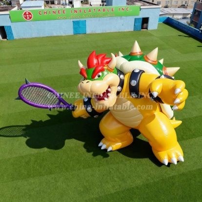 Bring the iconic villain from the Super Mario universe to life with this impressive inflatable Bowser tennis character! This giant inflatable cartoon figure features the beloved antagonist Bowser in his classic orange and yellow design, complete with his signature spikes, horns, and menacing expression. What makes this inflatable truly special is the tennis theme - Bowser is shown holding a detailed purple tennis racket, making it perfect for sports events, tennis tournaments, or Super Mario-themed parties.