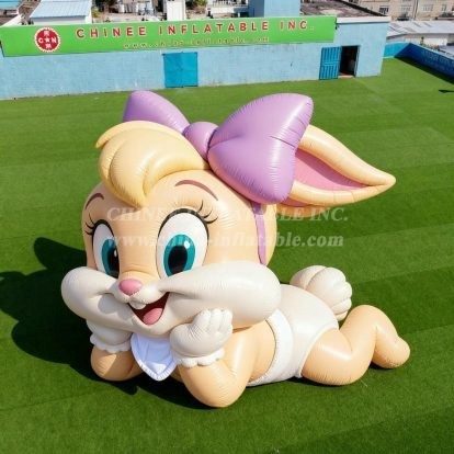 Transform your event space with this adorable Cartoon3-123 Easter Bunny Inflatable Model Product from Chinee Inflatables Inc. This charming inflatable features a loveable cartoon rabbit design with expressive blue eyes, a sweet smile, and distinctive purple bow ears that instantly capture attention and create a magical atmosphere.