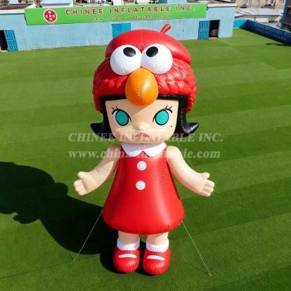 Bring enchanting charm to any event with this delightful Cartoon3-202 Little Red Riding Hood Owl Hat Girl Inflatable Model Product from Chinee Inflatables Inc. This captivating inflatable decoration features an adorable cartoon character dressed in a vibrant red outfit with classic white collar details and matching red shoes.