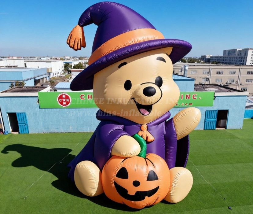 Transform your Halloween display into something truly magical with Chinee Inflatables' charming Halloween Bear inflatable decoration. This adorable oversized bear, dressed in a purple wizard's robe and matching pointed hat with orange trim, brings a delightful blend of cuteness and Halloween spirit to any outdoor space.
