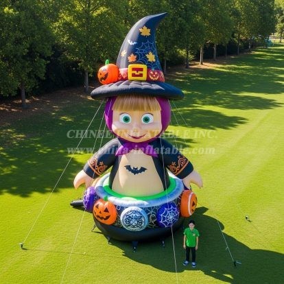Bring spooky fun to your event with the Cartoon3-412 Halloween Witch Inflatable Cartoon from Chinee Inflatables. This towering witch character features a friendly face, a classic pointed hat decorated with stars and webs, and a cauldron base accented with spiderweb graphics and jack-o’-lantern details. Designed as a decorative showpiece rather than a ride, it’s perfect for entrances, photo zones, parades, and seasonal promotions where high visibility and quick setup matter.