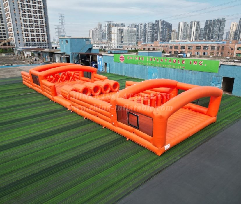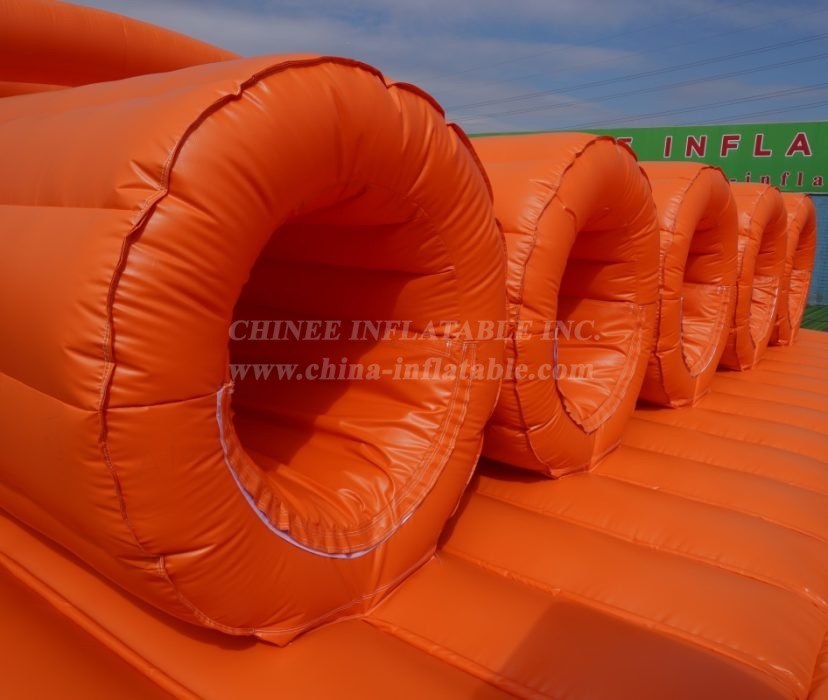This massive, vibrant orange course is an absolute showstopper, designed for high-energy fun and friendly competition. Featuring two identical lanes, it’s the perfect attraction for races, team-building events, and large festivals. Watch as participants navigate a gauntlet of challenging obstacles: