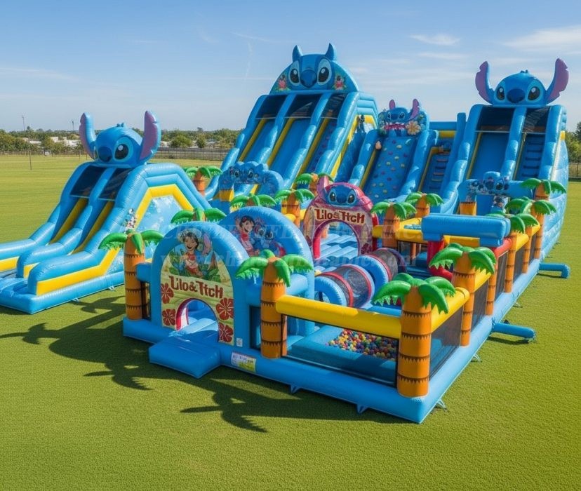 Nuestra tecnología de costura es de doble costura con costura cuádruple en el punto de tensión inferior, cuidamos todos estos detalles con barras de refuerzo adicionales para garantizar que no haya problemas cuando los clientes los usen, asegurando que los inflables tengan una vida útil de más de 3 años.