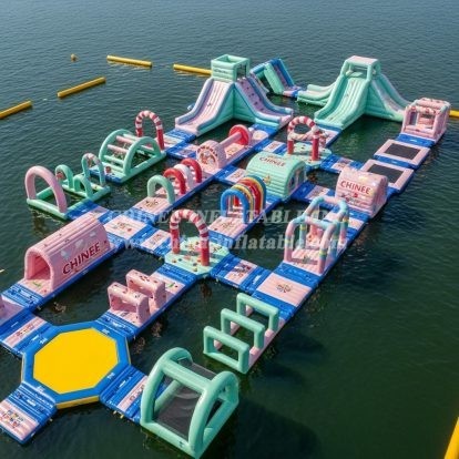 Chinee utiliza material personalizado anti UV y resistente al calor, lo que aumenta la vida útil del parque acuático flotante en un 30%-50% más que el material normal que la mayoría de los proveedores han estado utilizando, especialmente en áreas con fuerte exposición a los rayos UV y altas temperaturas.