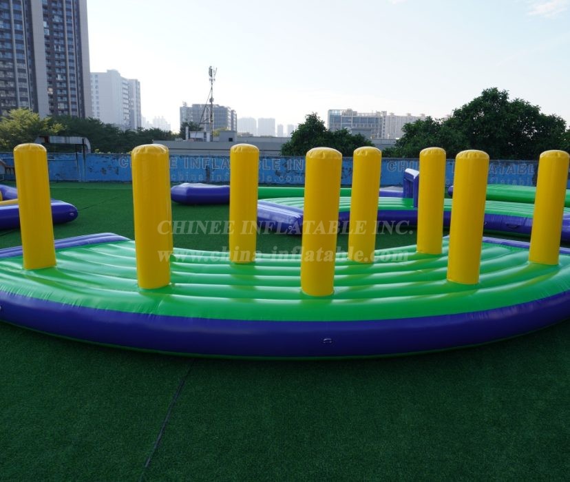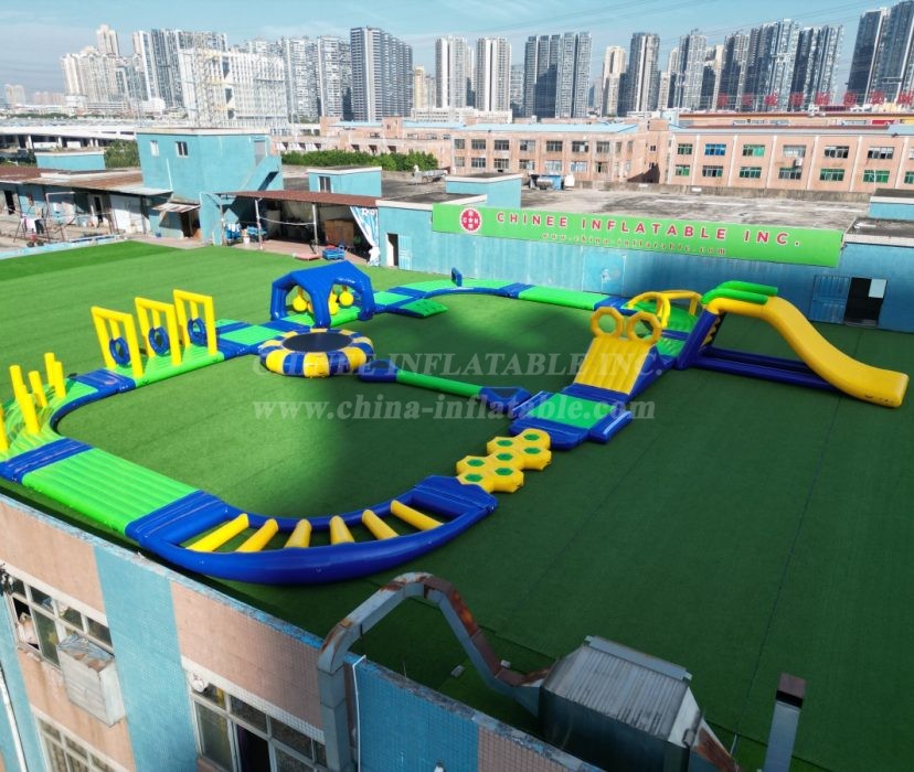 Key Features & Commercial Advantages: 🌊 Expansive & Modular Design: This impressive layout features multiple interconnected elements including a large inflatable trampoline, challenging balance beams, climbing structures, a thrilling slide, and various floating platforms and obstacles. Customize the configuration to fit your space and clientele. 💪 Heavy-Duty Commercial Grade: Constructed from robust, industrial-strength PVC, our water parks are built to withstand intensive commercial use, harsh weather conditions, and high participant traffic, ensuring maximum durability and longevity. 🛡️ Safety & Compliance: Engineered with participant safety as a top priority, featuring secure anchoring points, stable platforms, and high-quality materials to meet international safety standards. 📈 High Revenue Potential: A major attraction that draws crowds and encourages repeat visits, offering excellent return on investment for any commercial entertainment venture. 🎨 Customization Available: As a direct factory, Chinee Inflatables provides extensive customization options for size, color scheme, branding, and specific module selection to create a unique water park tailored to your business needs.