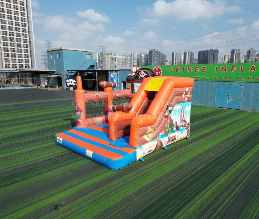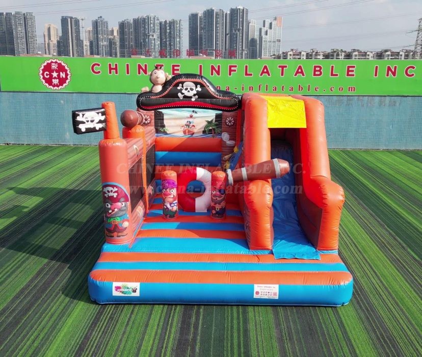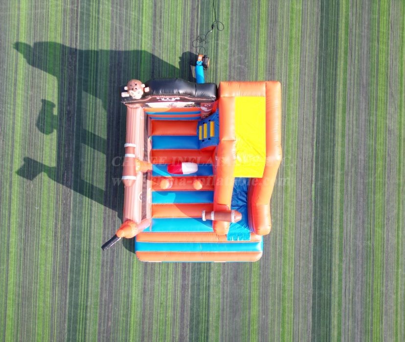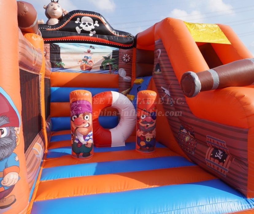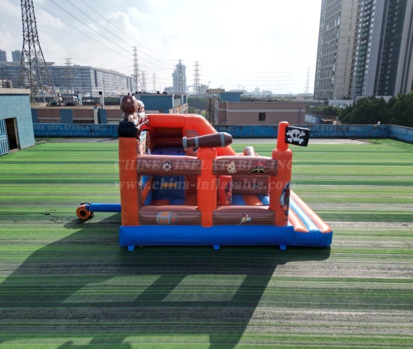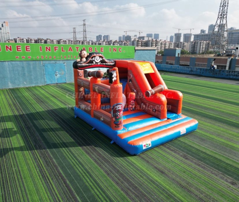 Why this is treasure for your rental inventory: 🏴☠️ A Proven Best-Seller: The pirate theme is an action-packed classic that is always in high demand for birthday parties, school functions, and community events. 💰 Maximum Play Value: As a combo unit, it offers multiple activities (bouncing, obstacles, climbing, sliding) in one footprint, allowing you to charge a premium rental rate. 🎨 Incredible Curb Appeal: The bright orange and blue colors, combined with the 3D pirate hat and flag, make this a stunning centerpiece that will attract attention from afar. ⚓ Built for Battle (and Play!): As a direct-from-the-factory Chinee Inflatables product, this unit is built with heavy-duty, lead-safe, commercial-grade PVC. With expert, reinforced stitching and safety features throughout, it’s designed to withstand years of profitable voyages.