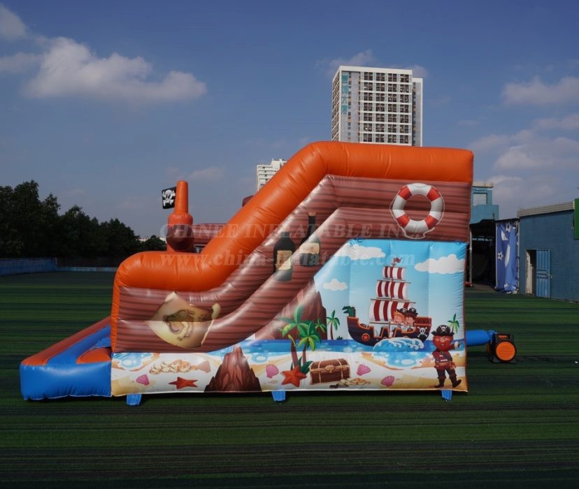 Direct from the Chinee Inflatables shipyard (our factory!), this all-in-one pirate-themed inflatable is a treasure chest full of fun. Young buccaneers can jump on the spacious deck, navigate past the pop-up pirate obstacles, climb the rope ladder to the top, and then make a swift getaway down the slide!