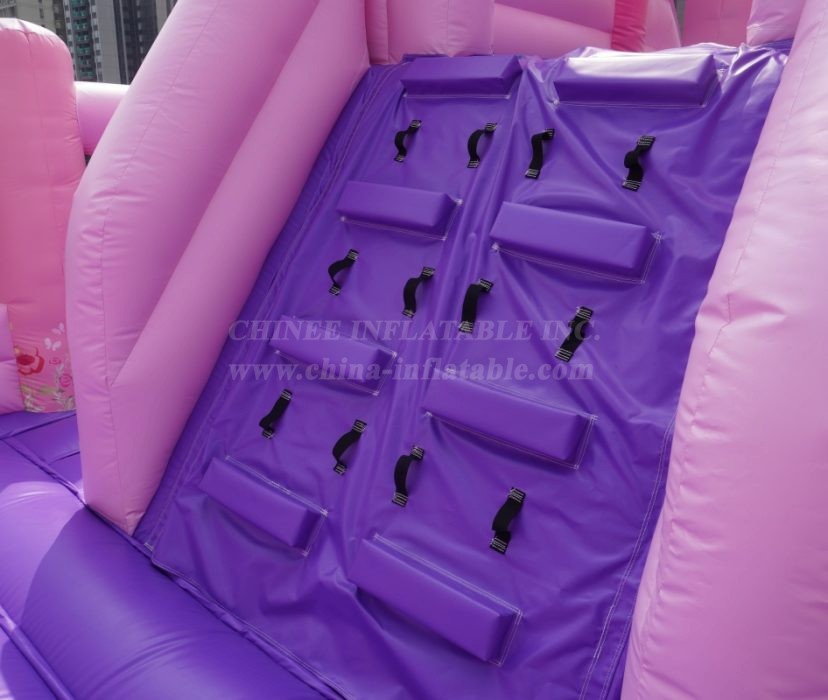 Straight from the Chinee Inflatables factory, this enchanting pink and purple palace is designed to be the crown jewel of any party or event. With its towering turrets, royal flags, and a beautiful archway adorned with classic princesses, this inflatable is an absolute showstopper.