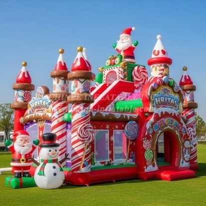 Bring the magic of the holidays to your event with the T2-8612 Christmas Theme Inflatable Combo from Chinee Inflatables. This festive unit blends a vibrant bouncing hall with an integrated slide, all wrapped in a gingerbread‑house style facade featuring candy canes, lollipops, and cheerful Christmas graphics. A friendly Santa and snowman welcome guests at the entrance, creating an irresistible photo spot and a joyful first impression for kids and families alike.