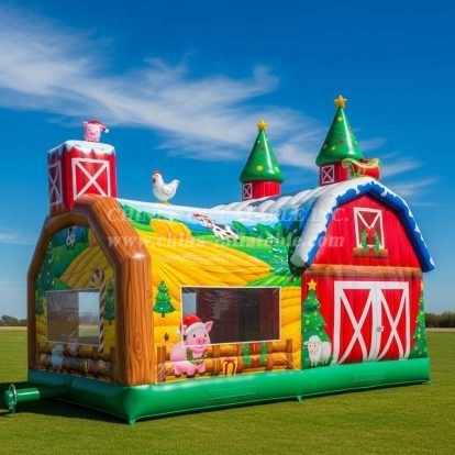 Bring holiday cheer to the countryside with our Farm Barn Christmas Theme Inflatable Bouncer. Styled like a red barn wrapped in winter accents, it features festive evergreens, snowy eaves, and friendly farm animals that invite kids to jump, play, and imagine. Large mesh windows on both sides provide excellent airflow and visibility, while the enclosed bounce area keeps participants safely inside. Built for heavy-duty commercial use, this unit uses premium, lead-free PVC vinyl with reinforced stitching at all high-stress points. A fully welded floor, interior safety netting, and soft, inflatable entrance ramp help ensure confident operation for rental fleets and event organizers. Set-up is quick with an included blower, anchor points, and durable D-rings for secure staking or sandbagging, making it ideal for schools, churches, winter festivals, farm-themed events, and community celebrations. As a manufacturer since 1998, Chinee Inflatables offers full customization—adjust colors, add logos, or incorporate themed signage to match your venue or brand. We also support multiple sizes to fit indoor gyms, outdoor fields, or backyard parties. Easy-to-clean surfaces and a compact roll-up size simplify transport and maintenance between events. Choose a bouncer that stands out visually and performs reliably season after season. Contact our team in Guangzhou for quotes, shipping options, and global service. Website: www.china-inflatable.com | Email: [email protected].