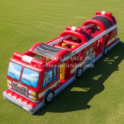 T7-3819 Firetruck Theme Inflatable Obstacle Course