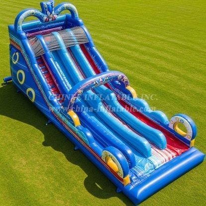 Experience high-speed thrills with the T8-8950 Sonic Inflatable Slide from Chinee Inflatables Inc. Featuring vibrant colors and iconic Sonic-themed graphics, this giant slide is perfect for parties, events, and fun days in the sun. Made with durable materials and expert craftsmanship, it ensures both safety and excitement for kids of all ages. Get ready to race down in style and bring the ultimate entertainment to your next gathering!