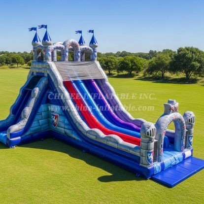 Experience thrilling fun with this majestic Knight-themed inflatable water slide. Featuring detailed castle towers and heraldic shields, this vibrant slide offers an exciting adventure for kids. Perfect for outdoor parties, it combines impressive medieval style with safe water sliding action for unforgettable entertainment.