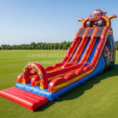This thrilling Monster Trucks Inflatable Slide brings exciting race vibes with vivid flame decorations and a giant monster truck topper. Perfect for kids who love cars and racing, it features easy climb steps and smooth sliding lanes for endless fun. Durable and eye-catching, it's a standout inflatable for outdoor events amusement parks.
